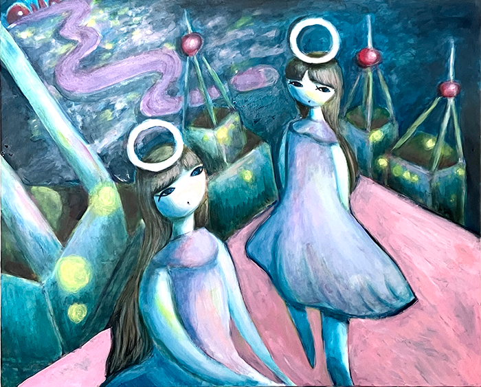 半分の夜|2025 Oil on canvas半分の山がみえる|2025 Oil on canvas月の透ける山|2025 Oil on canvas透明な山で|2025 Oil on canvasドラム缶の外側にある春|2025 Oil on canvasわたしたちが完全な夢を見たら|2025 Oil on canvasこのダムはきみのものになりたいと言った|2025 Oil on canvas中庭に花壇がある家の花壇|2025 Oil on canvas半分の夕日|2024 Acrylic on canvas半分の天国がみえる|2024 Acrylic on canvasここが地平線|2024 Acrylic on canvasワープフルーツの季節|2024 Acrylic on canvasつぶつぶ鍾乳洞の進化の過程|2024 Acrylic on canvas 濡れた黒いごまを見た|2024 Acrylic on canvas鍾乳洞雲の下に|2024 Acrylic on canvas新鮮な重力|2024 Acrylic on canvas太陽の水を待つ|2024 Acrylic on canvas逆のところに行く|2024 Acrylic on canvasどこに行くの|2022 Acrylic on canvasどこへ帰るの|2022 Acrylic on canvas わたしの部屋|2022 Gouache on canvas天国熱銀河|2021 Gouache on canvas